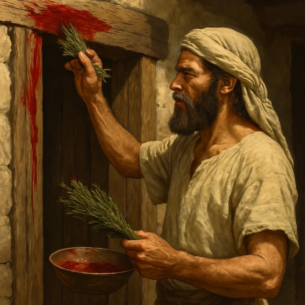 “Then Moses called for all the elders of Israel, and said unto them, Draw out and take you a lamb according to your families, and kill the passover. 22 And ye shall take a bunch of hyssop, and dip it in the blood that is in the bason, and strike the lintel and the two side posts with the blood that is in the bason; and none of you shall go out at the door of his house until the morning. 23 For the LORD will pass through to smite the Egyptians; and when he seeth the blood upon the lintel, and on the two side posts, the LORD will pass over the door, and will not suffer the destroyer to come in unto your houses to smite you.”